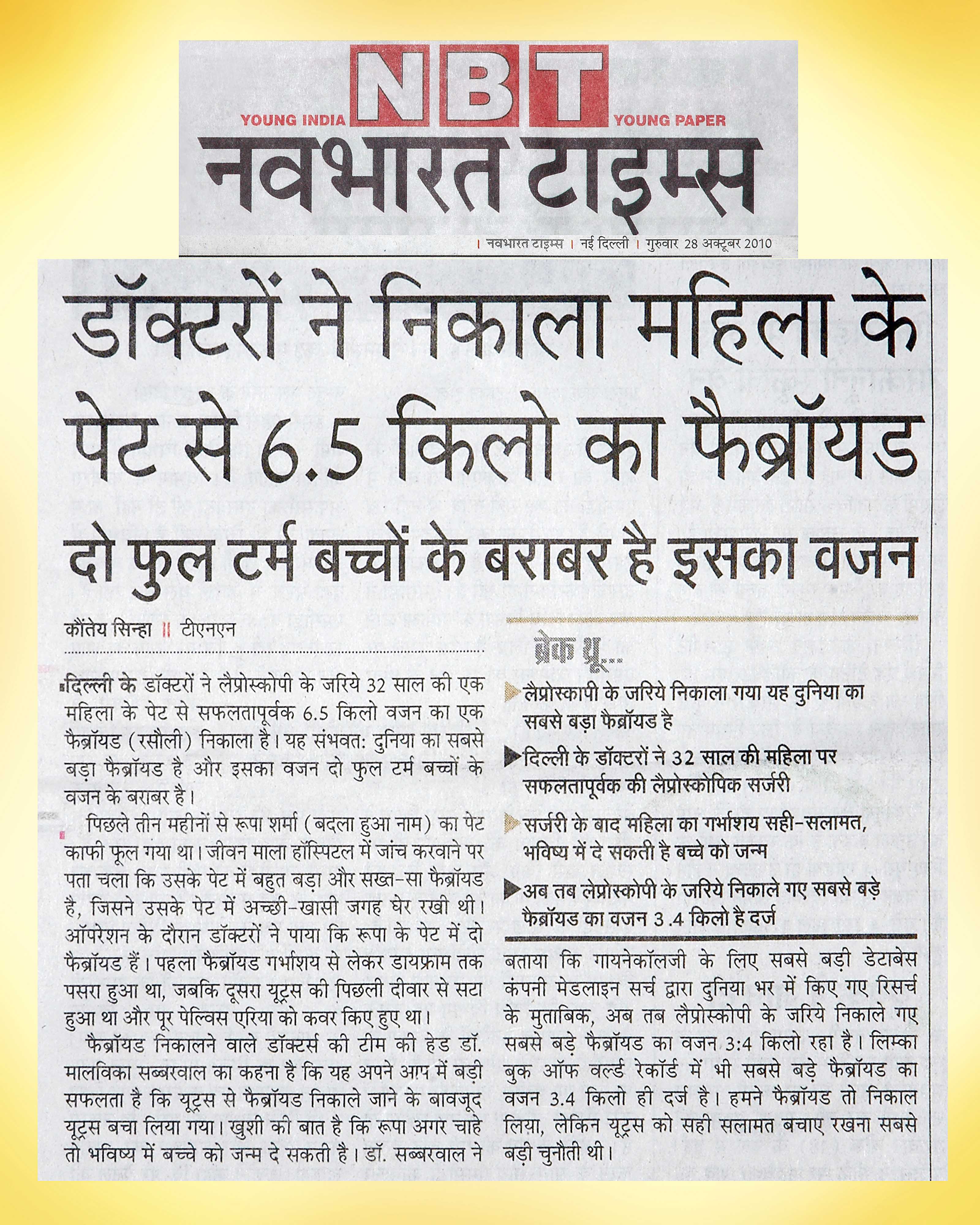 Worlds largest fibroid was removed at Jeewan Mala Hospital